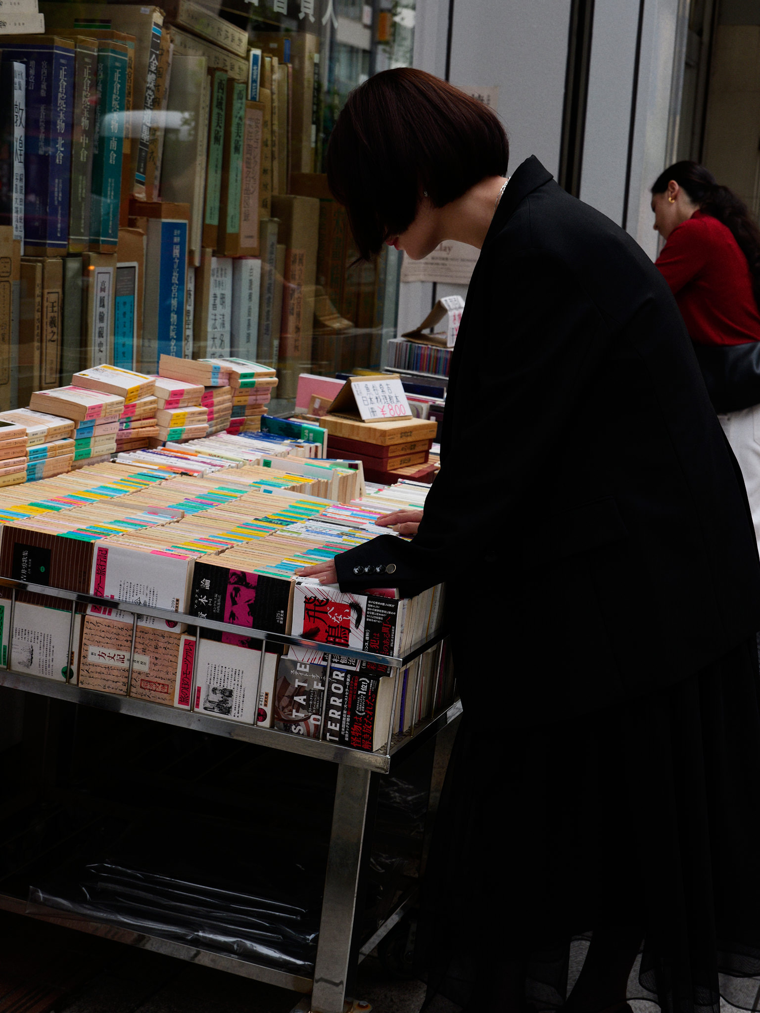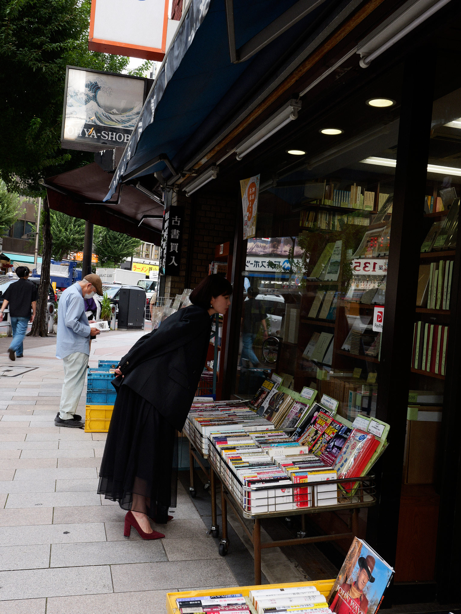 「東京は、私にとって学びの街」。 今回の撮影場所に選んだのは、お茶の水駅近くの聖橋から神保町へと続くエリア。「シングルマザーの家庭で育ったので、10代後半から自分でお金を稼がないといけなかったんです。高校には行ってたけど、大学に進学できる余裕はなくて。弟の学費も捻出しないといけなかったので、大阪・北新地のクラブでホステスをしていました。でも、どうしても哲学を学びたくて、調べてみたら大学には通信学部っていう制度があることを知ったんです」いろいろと調べて、面白そうなカリキュラムが多かった日本大学の通信課程を選んだ。「授業料は年間8万円で、たくさん試験も受けられて、ものすごい量の教科書がついてきたんです(笑)。それがもう嬉しくてしょうがなかった。19歳から23歳まで、大阪で働きながら年に一度だけ1カ月間のお休みをもらって東京でのスクーリングに通っていました。通信教育ってうまく想像できないかもしれないけれど、学びたい人にとってはとてもありがたいシステムなんです。朝から晩まで講義を受けて、さらに問いが浮かんで議論が深められると思ったら自分で短い文章を書いて、翌日すぐに先生にみてもらったり。質問に答えてくれる、あるいは議論してくれる人がいるなんて、最高に幸せでした。あとは神保町の古本屋へ。何時間でもいられました」。聖橋から電車を見送りながら、川上さんは言う。「あの夏の1カ月間の思い出は、私にとって本当に大切なものです。勉強って何かを手に入れることじゃなくて、自分の問いにどう向きあっていくのかを粘り強く探り、知っていくこと。そのときは自分が小説を書くなんて想像もしてなかったけれど、この時期に重要な書物をしっかり読み、考える方法を自分なりに身につけたことは、今の仕事のすべてを支えていると思います」川上さんにとって、神保町は単なる街ではない。「出会った人たちのことも、よく覚えています。ここには、いろいろな事情を抱えながら、それでも、なんとか学ぼうとする人たちが集まっていた。そこにいるだけで、勇気をもらえる場所なんです」。